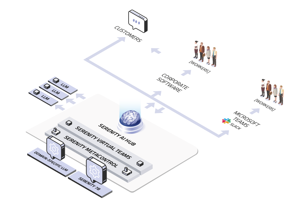 El sistema Meta-control es otra tecnología de alto valor para SubGen AI. Este servicio opera en el núcleo de AI Hub, supervisando el uso adecuado y la aplicación segura de los productos basados en LLM en toda la empresa. El metacontrol puede compararse con un antivirus adaptativo para tecnologías de IA, donde las amenazas incluyen no solo riesgos de seguridad, sino también el uso indebido y la explotación del vasto acceso a los datos de los LLM.